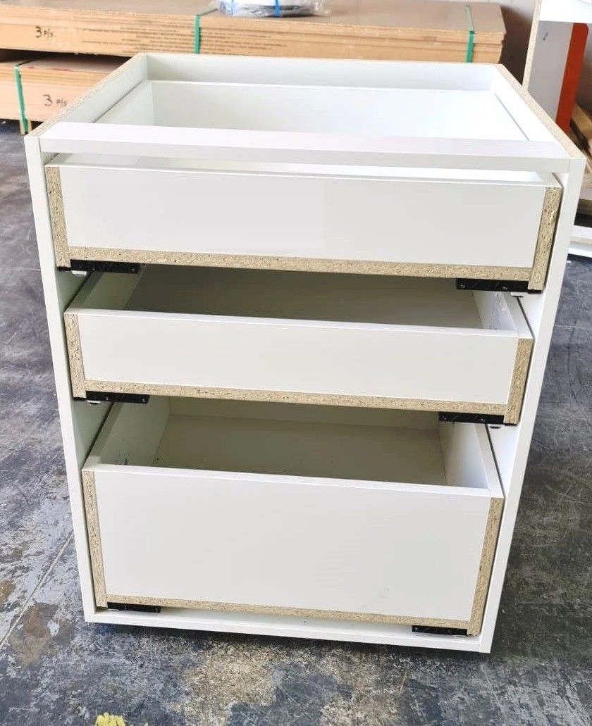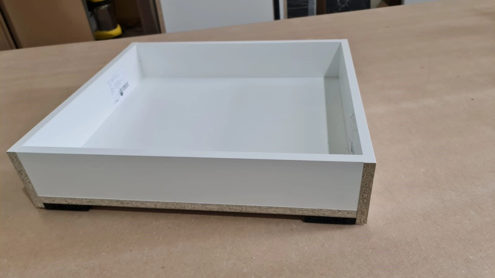 There are many types of drawer boxes in the cabinet-making industry. Differences coming mainly to the types of runners it used for each drawer. In this document, we are going to explain the method of assembly for drawers with full boards carcass and concealed soft close runners. Basically, our target is at the end of our drawer box to looks somethings as below photo:
